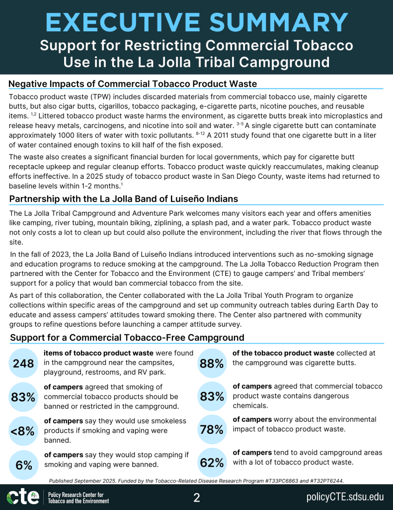 - How does tobacco product waste impact the La Jolla Indian Campground?
