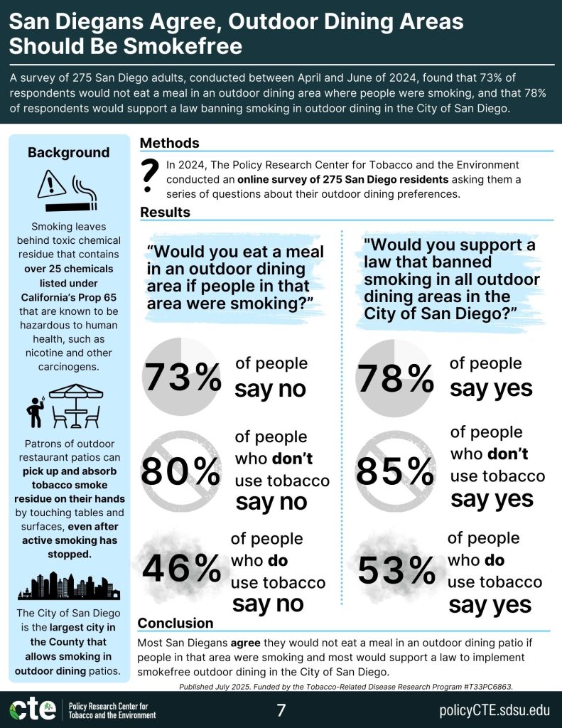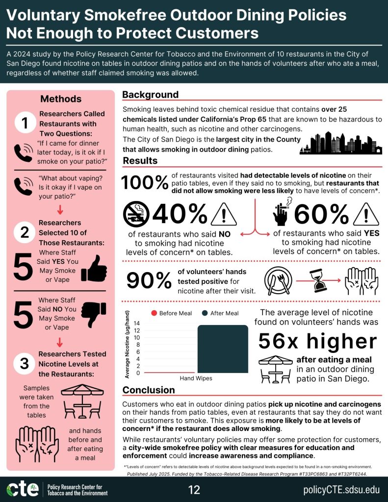 Everyone deserves to eat out in a clean environment, but currently not all outdoor dining areas in San Diego are smokefree. The Policy Center wants to show policymakers why a citywide smokefree outdoor dining policy can protect restaurant workers and patrons.