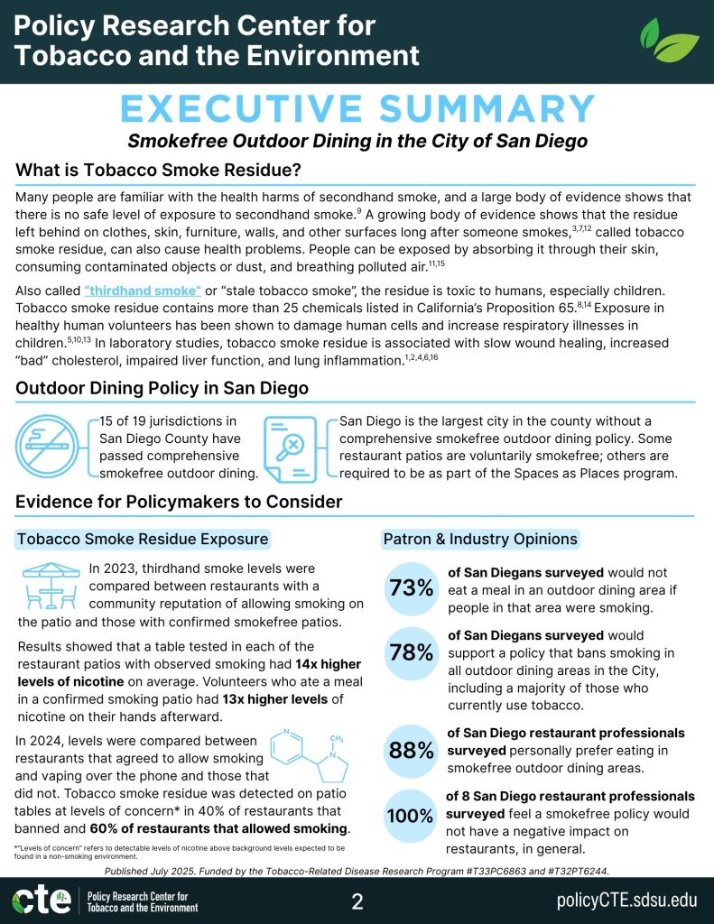 - Does the City of San Diego support a smokefree outdoor dining policy?