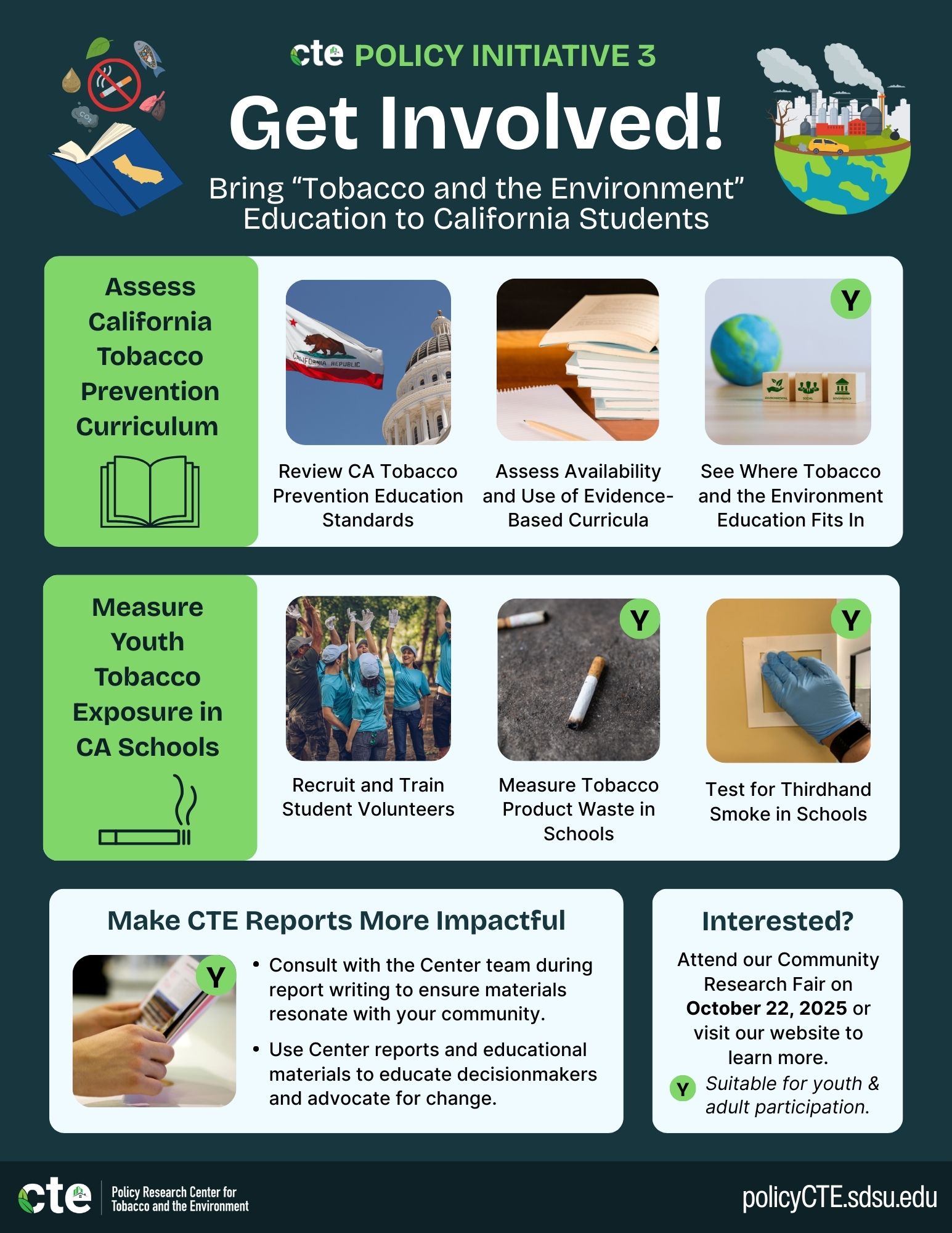 In the current climate landscape, students are often at the forefront of advocating for environmental issues. With tobacco companies attempting to rebrand to younger generations through “greenwashing” tactics and by producing more “smokeless” products, it is important to raise awareness among students about the toxic environmental legacy of commercial tobacco. Messaging consistent with youth concerns about the environment could be an opportunity to discourage youth use of tobacco products.