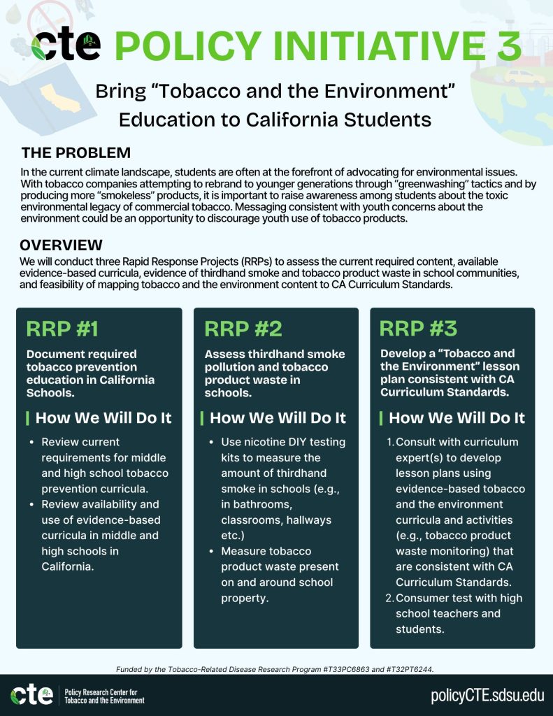 - Develop a “Tobacco and the Environment” lesson plan consistent with California Curriculum Standards.